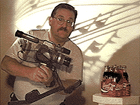 It's a Panasonic--but it's Mini-DV! Bill Werntz, media specialist for Gunsite Training Center in Arizona, wisely chooses the Steadicam JR over the EZ-1's image stabilizer. Bill produces a huge variety of training videos for the military, S.W.A.T., and for consumer awareness. His operating form is nearly perfect and it looks like he's taking great care of his rig. Bill says, "I haven't seen anybody else doing it--and I fly that thing around like I carry my right hand; it's just like a piece of me now." Bill, let me send you a resume tape so I can show you how long I've been Steadicamming with my DV system!! I think your job sounds really exciting and I would love to see examples of your work some day! Pay Bill and his company a visit at www.gunsite.net. Complete the Handheld Steadicam Workshop Tour!!--all written by John Brune Back to the Home Page!