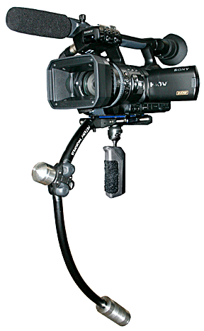 Handheld Steadicams are simply amazing devices. Much of the information on this website still applies to the Steadicam JR and I strongly urge you to review your Steadicam Merlin manual and DVD for additional questions--as well as going to Tiffen's Steadicam.com web page. Also you can download the Steadicam JR Operations Manual or the Steadicam JR Setup Guide (both in PDF format) for additional info. Since the advent of DV, HDV, and tapeless video cameras the Steadicam JR and now the Steadicam Merlin mean more to video professionals than ever before because of their versatility and longevity. (The Steadicam JR was originally designed for Hi-8 and VHS-C cameras!) I used a Sony DCR VX-1000 for 4 years on the JR and since then the Sony VX-2000 and VX-2100 (The Sony TRV-900 worked great as well!) and now I fly a Sony HVR-V1U and Sony NEX FS-100 on a Steadicam Merlin. I've provided some setup recipes for these Handheld Steadicams here at my "Steadicam Setup Recipes" page! There's also complete setup info at the "Steadicam Merlin Online Cookbook" webpage provided by Tiffen--including user recipes.! The Steadicam is a marvel of simplistic engineering that has revolutionized filmmaking and videography more than any other camera accessory. The Steadicam JR and Steadicam Merlin, invented by Garrett Brown and formerly manufactured by Cinema Products and now by Tiffen, are hand-held stabilization systems (costing around $600-$900) that can balance any video or film camera weighing up to six pounds. Combined with the pristine clarity of Mini-DV and HDV the Handheld Steadicam helps create shots that look identical in quality to a larger and much more expensive Steadicam system. But shooting video in diverse situations ultimately means that add-on accessories must be utilized--like microphones, wide lenses, filters, etc. Adding such items to your Steadicam rig can add weight to the camera which then adds degrees of complication to your setup and operating efficiency. .....But different counterbalancing formulas can be designed into the scheme of Handheld Steadicam operation and through this website I shall try to exploit everything I know to help YOU--my fellow Handheld Steadicam videographer! I shall compile information to help make the Steadicam Merlin or Steadicam JR work easily and quickly for anyone willing to give it a try. Please be sure to peruse setting up the Steadicam JR with a wide conversion lens. and caring for the Steadicam JR screen. Also, check the Handheld Steadicam FAQ for additional info! Enjoy your visit and feel free to contact me if you have questions about any of the information I've provided here. You can e-mail me anytime at:steadicamjr@yahoo.com